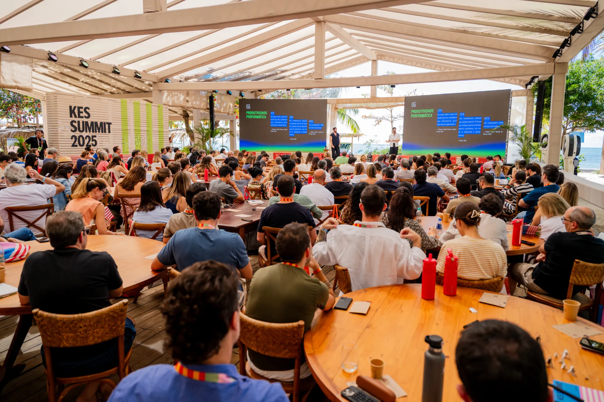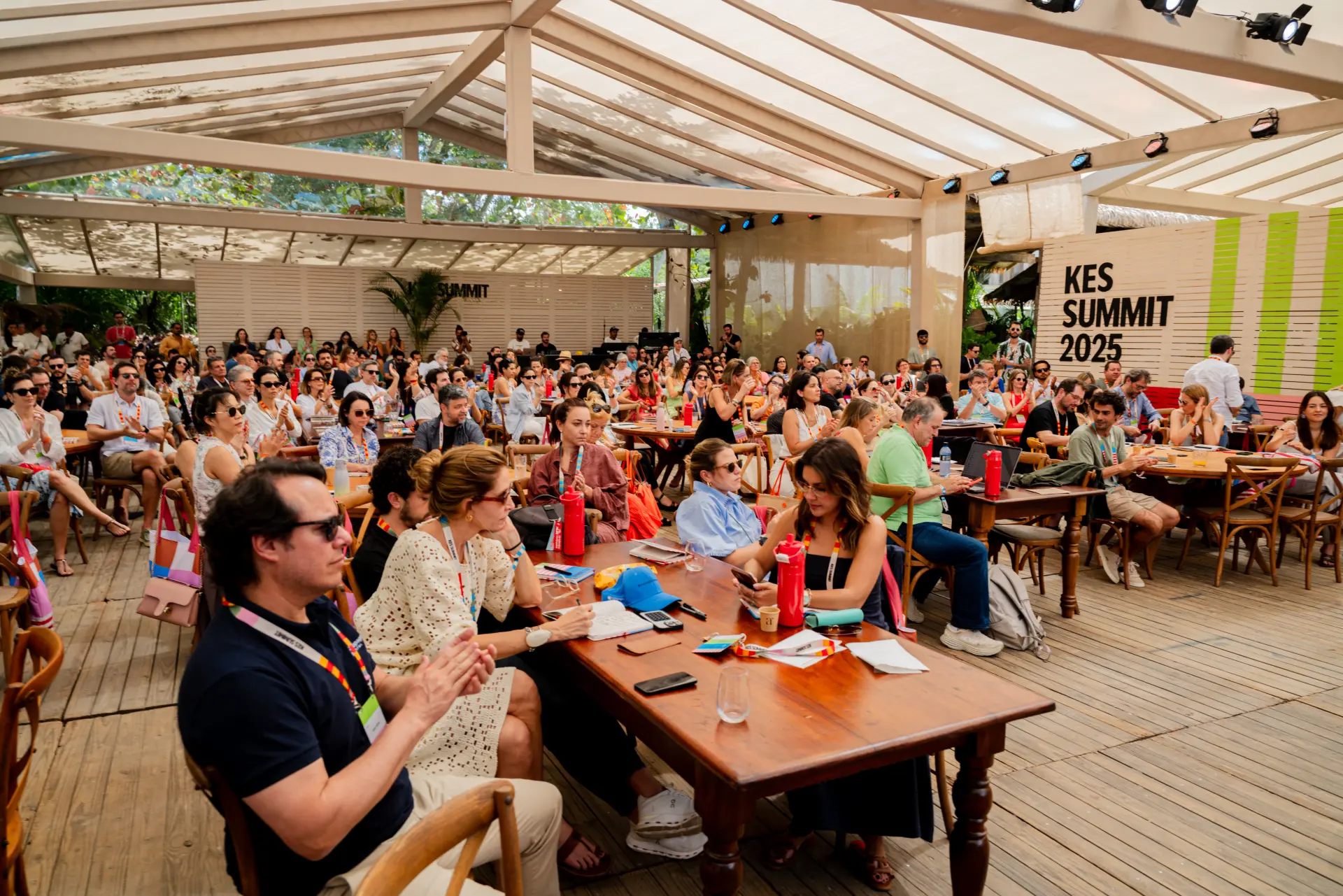 O coração do KES Summit. É aqui que grandes ideias ganham voz. Um espaço de escuta ativa e troca profunda, onde acontecem as principais falas, painéis e provocações que moldam o espírito do evento. Localizada à beira-mar, na Praia dos Coqueiros, nossa plenária foi construída exclusivamente para o KES Summit — integrando natureza, arquitetura e propósito em uma experiência sensorial única.